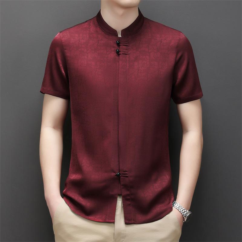 Летняя мужская рубашка с короткими рукавами в китайском стиле, с скрытыми цветочными планками, воротником-стойкой, повседневная мужская подкладка XL