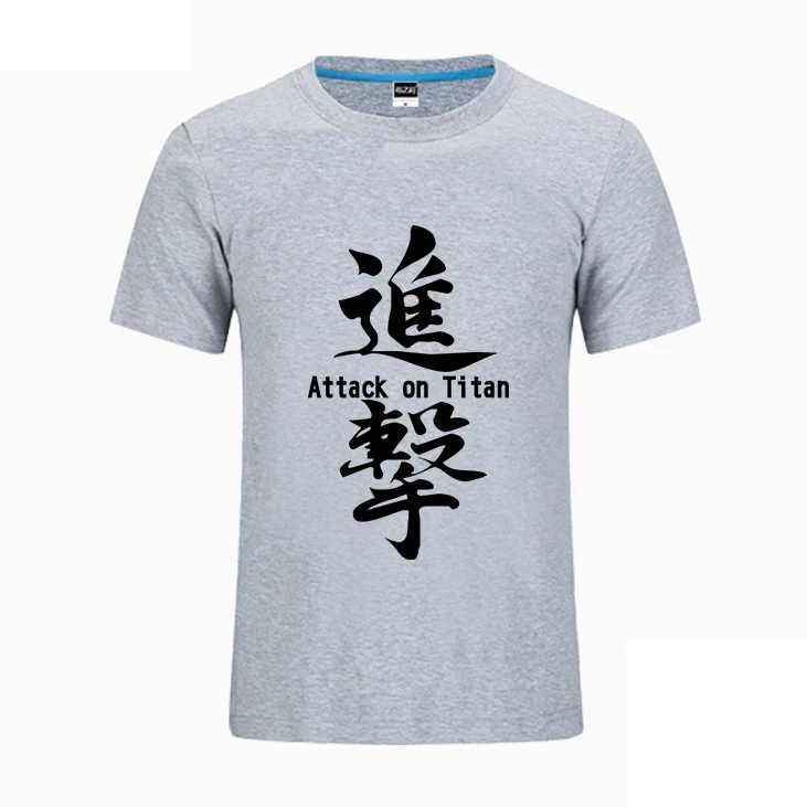 Летняя мужская серая Повседневная футболка с круглым вырезом и короткими рукавами с надписью «Attack on Titan'»