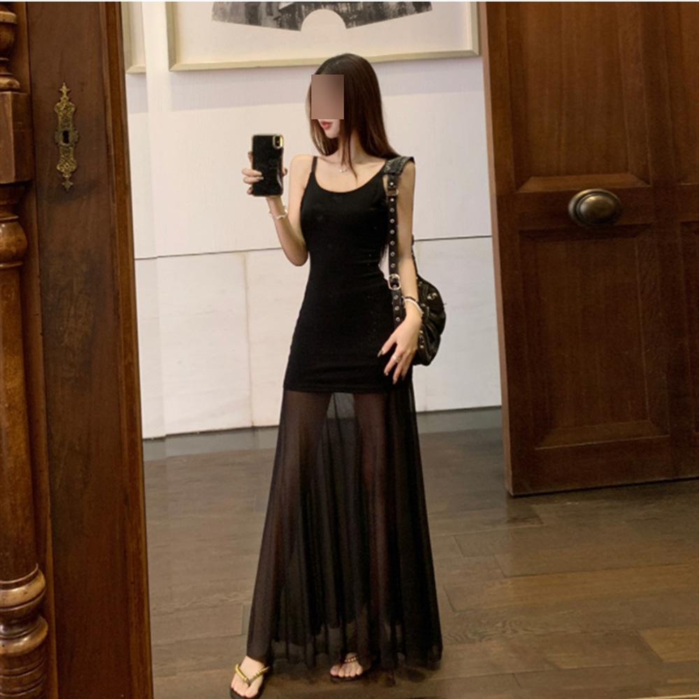 Летняя новая белая длинная юбка Богемная юбка для отпуска Огромное красивое платье на подтяжках женская высококлассная элегантность XL- (recommended 110-60kg) чёрный