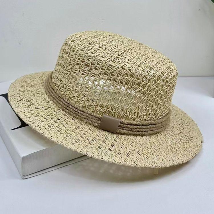 Летняя новая декоративная соломенная шляпа из полой пеньковой веревки с круглой тульей, для улицы, пляжа, солнцезащитная и затеняющая бежевый