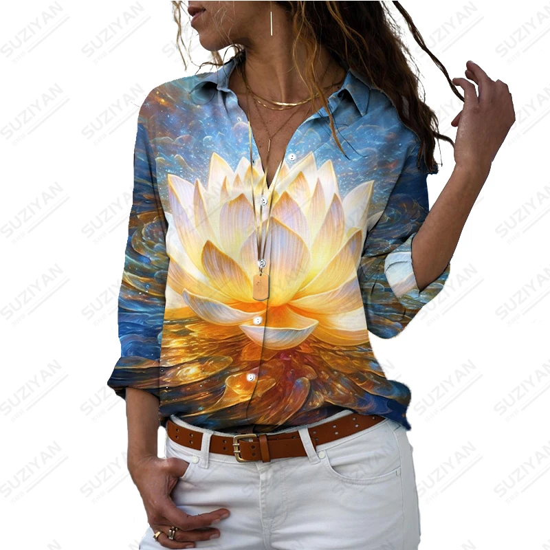 Летняя новая женская рубашка с 3D-принтом лотоса, женская рубашка, повседневные стильные женские рубашки, модные свободные женские рубашки
