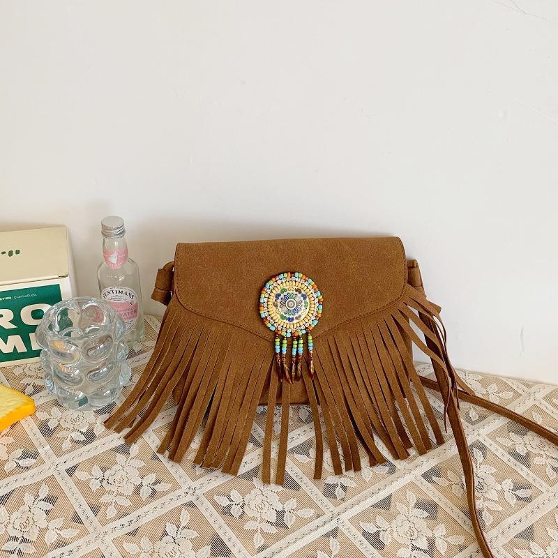 Летняя новая модная нишевая сумка на плечо с бахромой, сумка через плечо, персонализированная маленькая квадратная сумка из замши коричневый