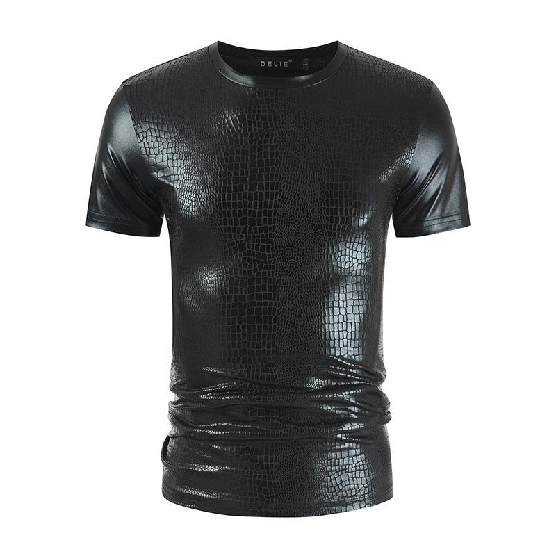 Летняя новая мужская облегающая футболка с коротким рукавом, модная мужская яркая футболка с принтом змеи для ночного клуба, ткань горячего тиснения XL чёрный