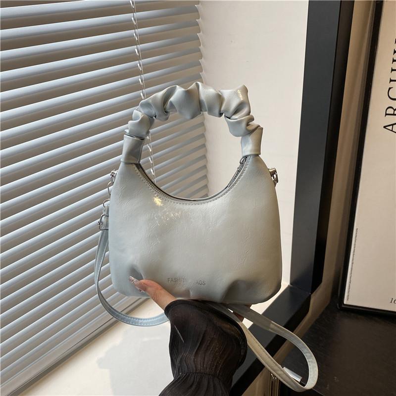 Летняя новая однотонная модная трендовая сумка подмышку, темпераментная нишевая эстетичная плиссированная портативная плечевая сумка-мессенджер синий