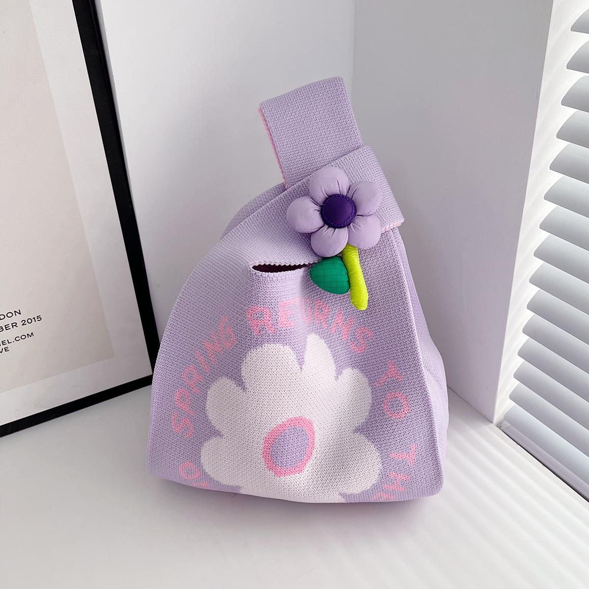 Летняя новая симпатичная вязаная сумка с цветком, корейский выпуск, портативная сумка для женщин, большая вместимость, сумка для покупок, подарочная сумка фиолетовый