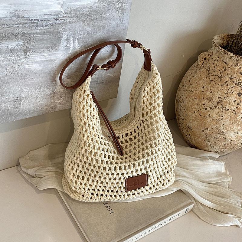 Летняя новая сумка большой вместимости женская 2025 модная сумка через плечо пляжная дорожная универсальная отпускная плетеная сумка бежевый