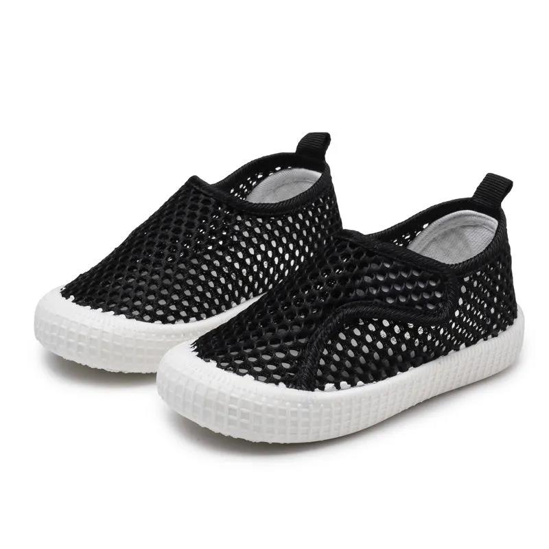 Летняя обувь для мальчиков и девочек. Детская спортивная легкая обувь на мягкой подошве на плоской подошве. Нескользящая однотонная повседневная обувь из сетчатой ткани. 30 чёрный