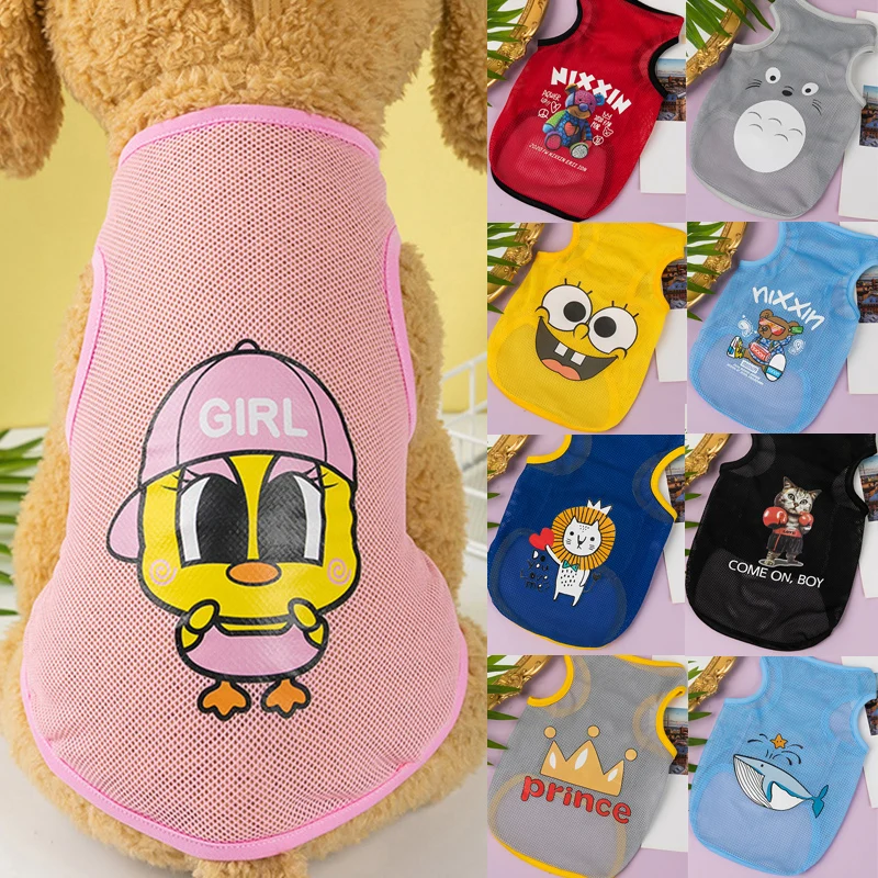 Летняя одежда для щенков, сетчатая одежда для маленьких собак, мультяшный тонкий жилет для собак и кошек, Тедди Чихуахуа, одежда для домашни...