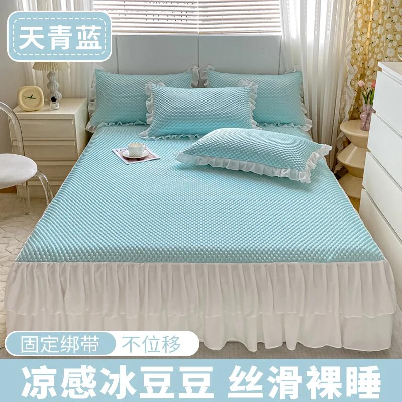 Летняя однотонная юбка из ледяного шелка с 3D узорами для удобного и прохладного постельного белья, тонкое марлевое пыленепроницаемое покрывало с рюшами по подолу 120x200cm bed skirt
