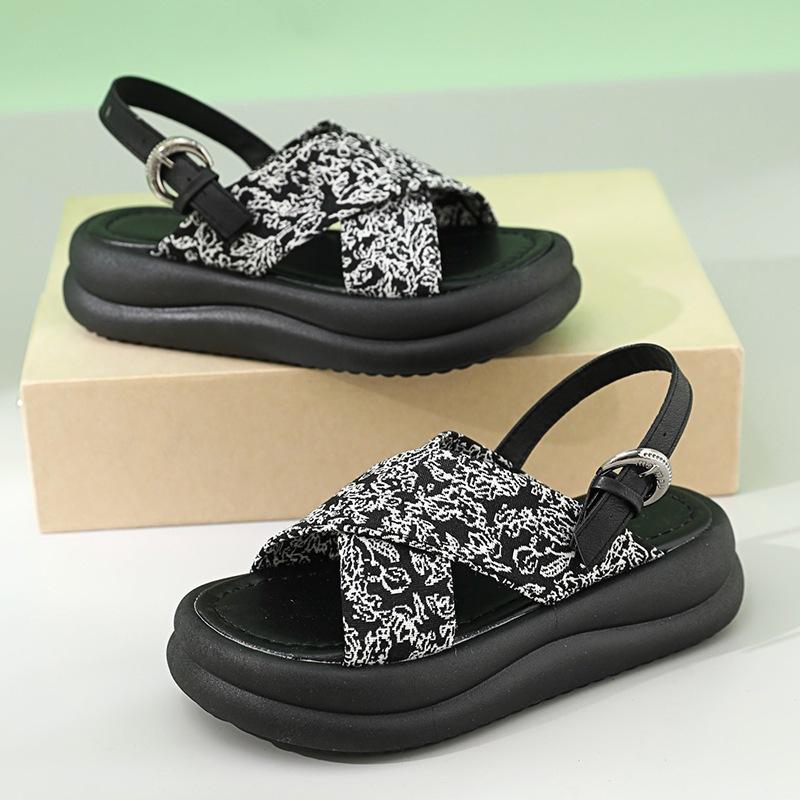 Летняя платформа национальный стиль с юбкой сандалии женские ретро римские туфли 2025 новые высокоценные с ремешком через пальцы пляжная обувь 40 чёрный