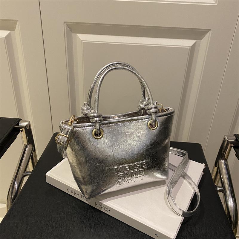 Летняя популярная женская сумка серебристого однотонного цвета, новая модная портативная наплечная сумка-мессенджер, изысканная премиальная сумка-ведро серебряный