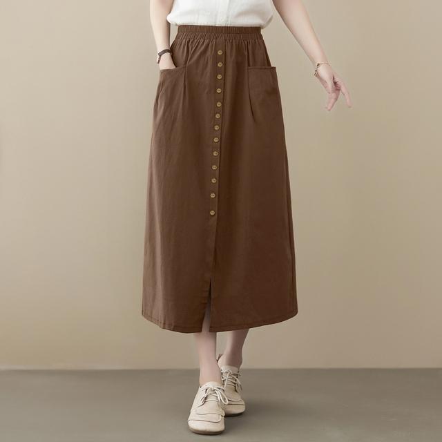 Летняя свободная повседневная юбка с эластичной резинкой на талии, женские однотонные юбки-миди большого размера, модная трапециевидная юбка Faldas Saia Work Jupe Kaftan XL темно-коричневого
