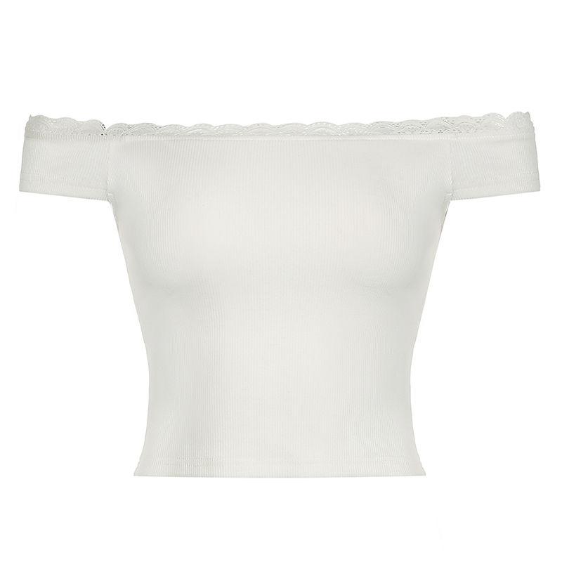 Летняя сексуальная кружевная футболка с открытыми плечами для женщин Y2k, горячая однотонная эластичная тонкая уличная одежда, модные повседневные эстетичные пляжные топы S белый