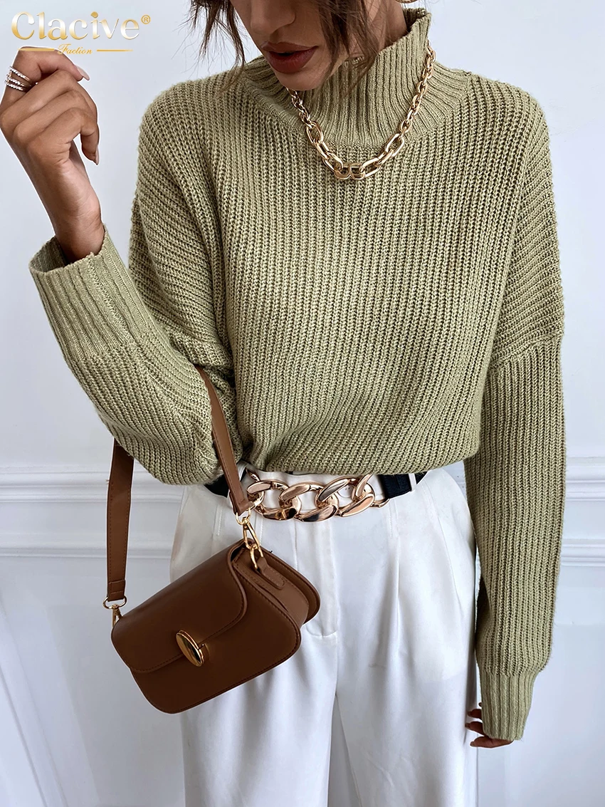 Clacive, зимний свободный зеленый женский свитер, модная водолазка 2025, свитер с длинными рукавами, элегантный классический однотонный топ, женская одежда