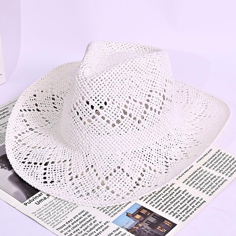 Летняя солнцезащитная шляпа для пляжа, женская полая шляпа от солнца, плетеная вручную соломенная шляпа, ретро ковбойская шляпа в западном стиле Average size