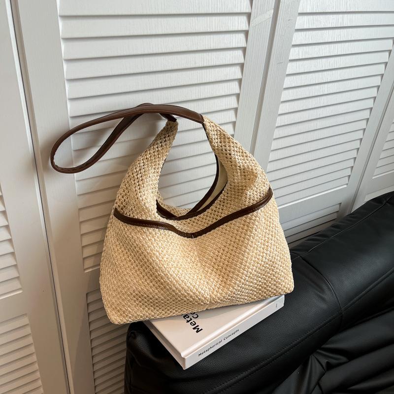 Летняя соломенная сумка женская 2025 новая на плечо большая вместимость сумка-ведро ручной работы пляжная отпускная сумка хаки