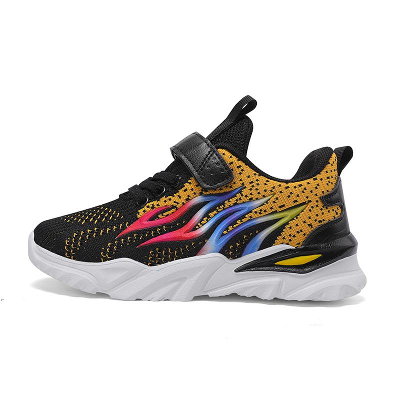 Летняя спортивная обувь для мальчиков Flame Flying Тканая полая дышащая спортивная мужская обувь 38 чёрный/жёлтый