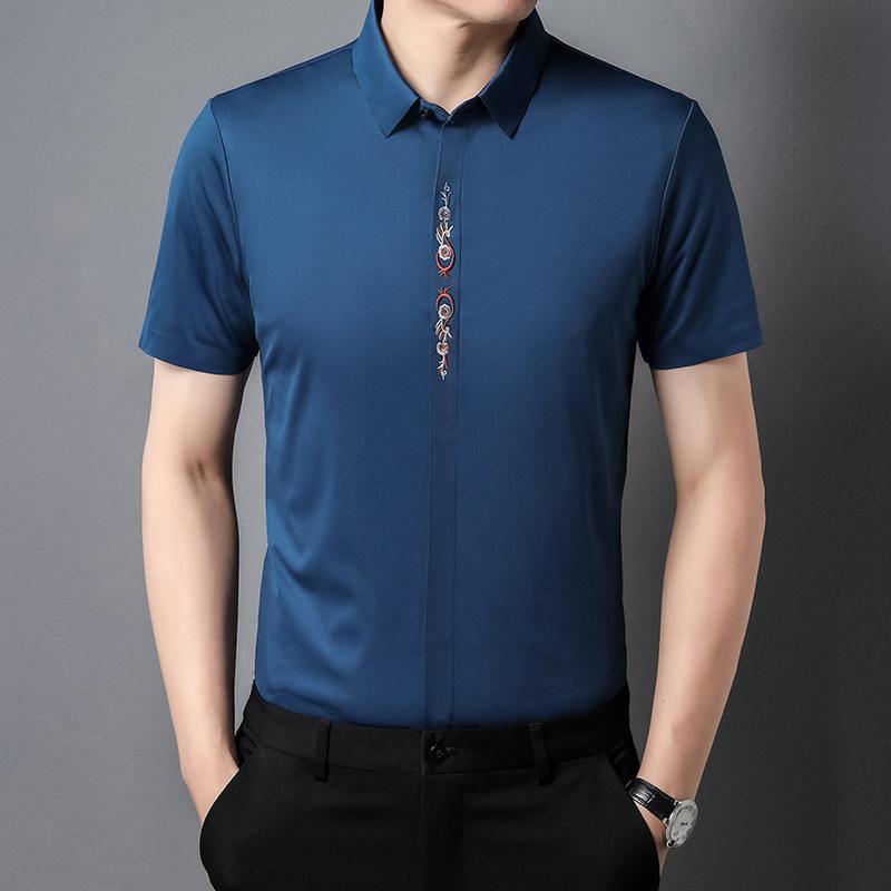 Летняя тонкая рубашка с коротким рукавом для мужчин среднего возраста, деловая рубашка для отдыха, рубашка с коротким рукавом, модная рубашка для папы, мужская 4XL синий