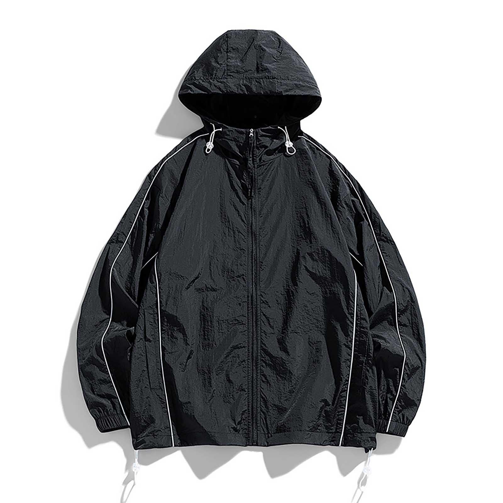 Летняя унисекс модная однотонная тонкая куртка на молнии с капюшоном и солнцезащитным козырьком L чёрный