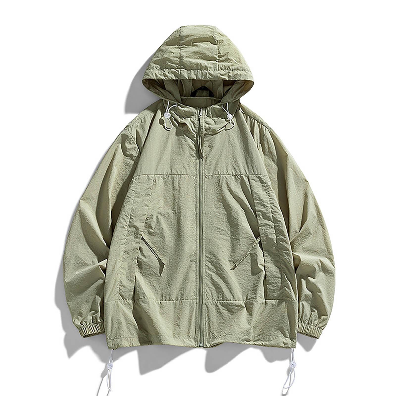 Летняя унисекс модная однотонная тонкая куртка на молнии с капюшоном и солнцезащитным козырьком XXXL зелёный