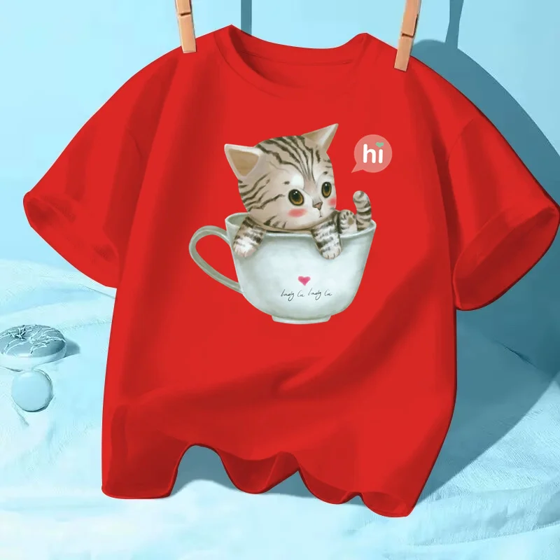 Летняя футболка Aimi Lakana для девочек, топы с коротким рукавом и котенком, повседневная одежда для девочек с принтом, детские футболки