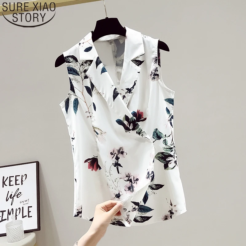 Летняя шифоновая рубашка, Модные свободные топы, винтажная блузка, женская рубашка без рукавов, пуловер, женская одежда, блузы 15139