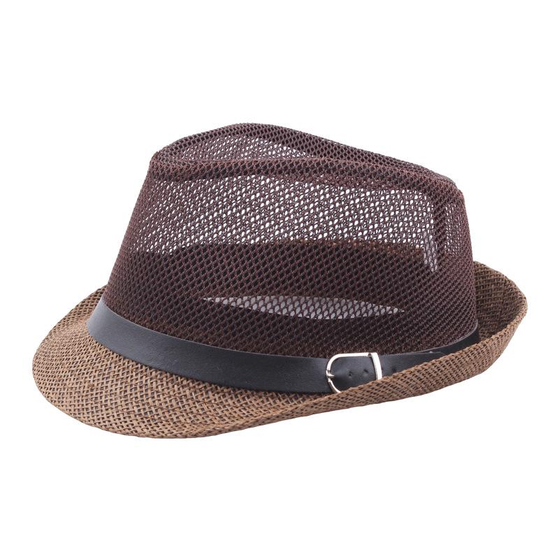 Летняя шляпа джазовая сетка для людей среднего и пожилого возраста, дышащая, шляпа-цилиндр для пожилых людей, солнцезащитная шляпа для улицы, соломенная шляпа Around 58 темно-коричневого