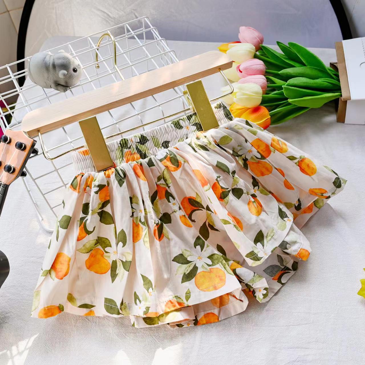 Летняя юбка-брюки с цветочным принтом для девочек 2023 года - корейская мода, милые детские шорты 110 cm