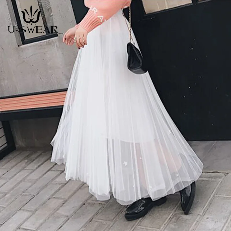 Летняя юбка из тюля с бусинами, доступны четыре цвета, юбка принцессы, длинные белые юбки до щиколотки