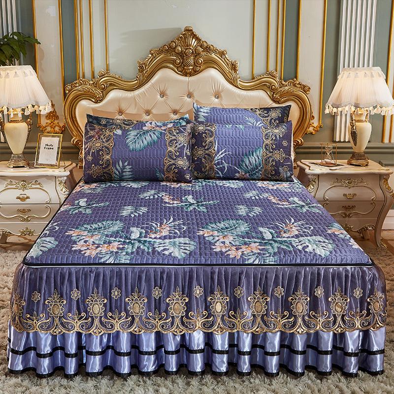 Летняя юбка-кровать, комплект из трех предметов из ледяного шелка, летний коврик для сна, кондиционер, мягкое сиденье, моющееся стеганое покрывало, коврик 1.5x2.0m 3pcs