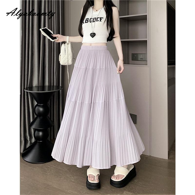 Летняя юбка миди плиссе в стиле фейрикор для женщин, с высокой талией, черная, белая, бежевая, фиолетовая, с оборками, элегантная, женственная, базовая юбка для леди One Size фиолетовый