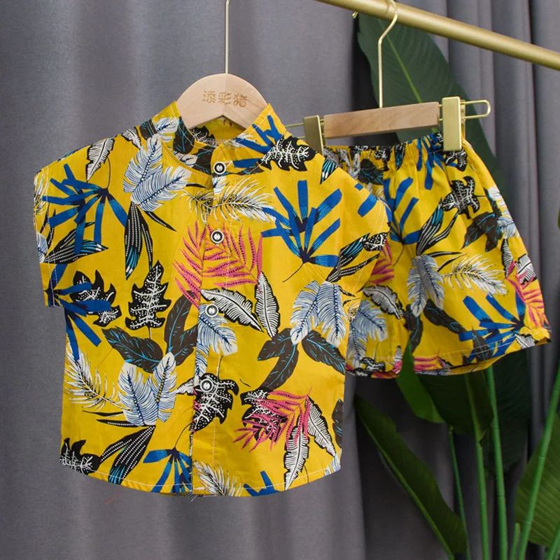 Лето 2021, костюм, рубашки с коротким рукавом для мальчиков, пляжные детские рубашки с цветами, одежда для детей 1-3 лет