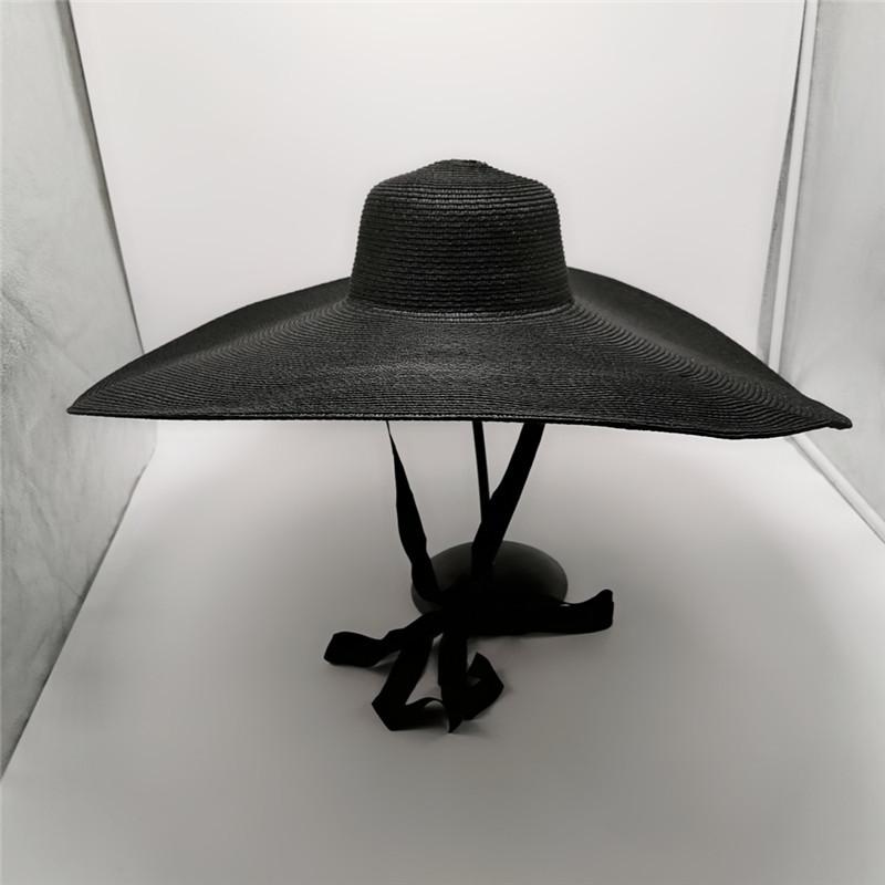Лето 2022, новинка, красная женская пляжная шляпа с большим карнизом и кружевным ремешком, соломенная шляпа от солнца, 23 см, складная пляжная шляпа большого размера 56-58cm чёрный