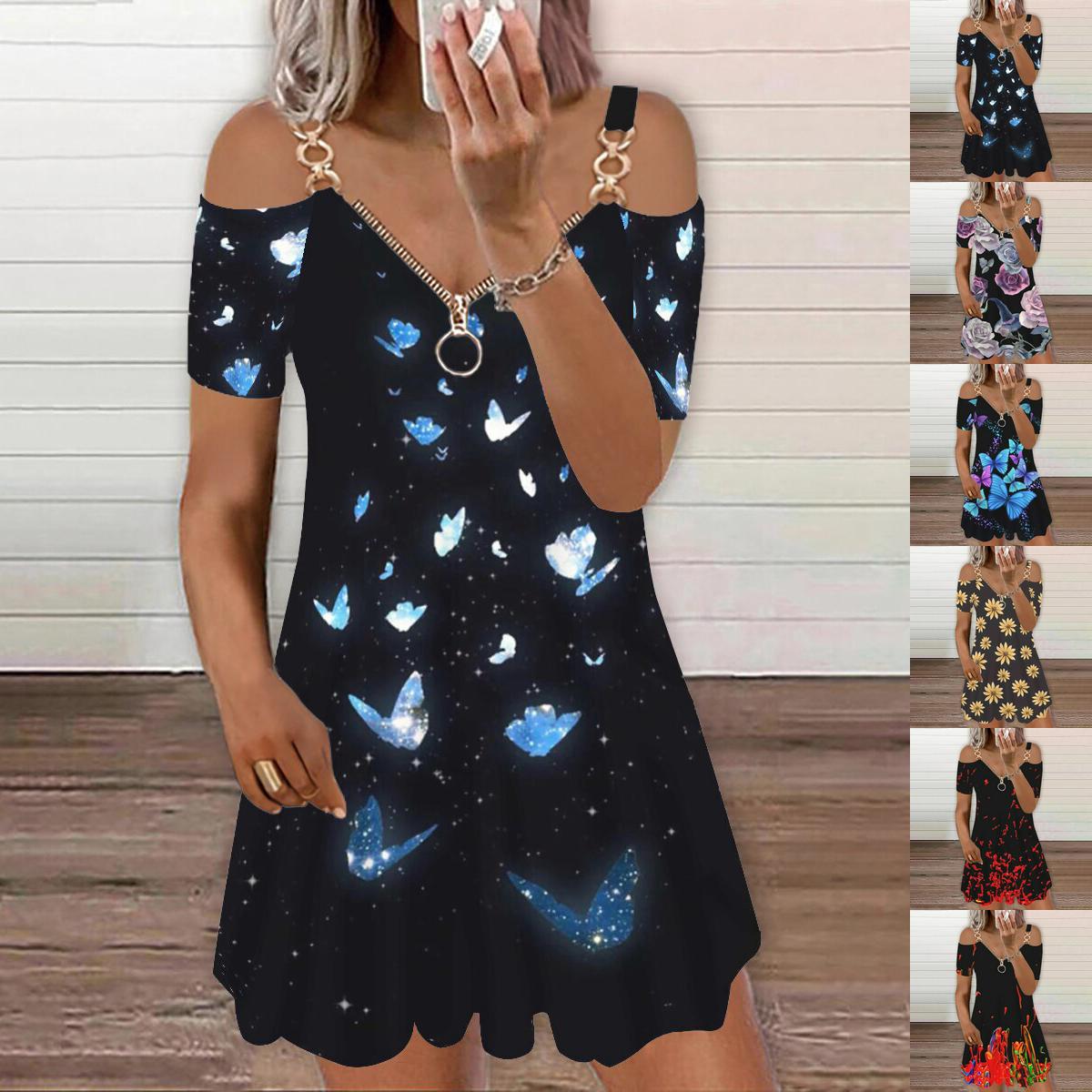 Лето 2023 г., женское платье больших размеров с коротким рукавом и v-образным вырезом на шее, платье больших размеров S-XXL