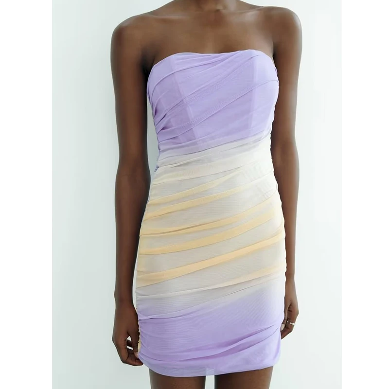 Лето 2023, женские сексуальные блестящие мини-платья без бретелек с драпировкой