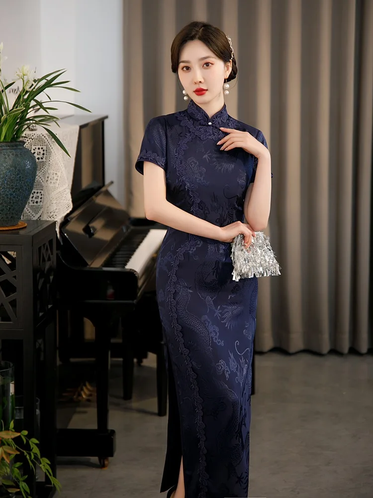 Лето 2023, улучшенное вечернее платье Чонсам в традиционном китайском ретро-стиле, длинное пикантное элегантное Благородное женское платье
