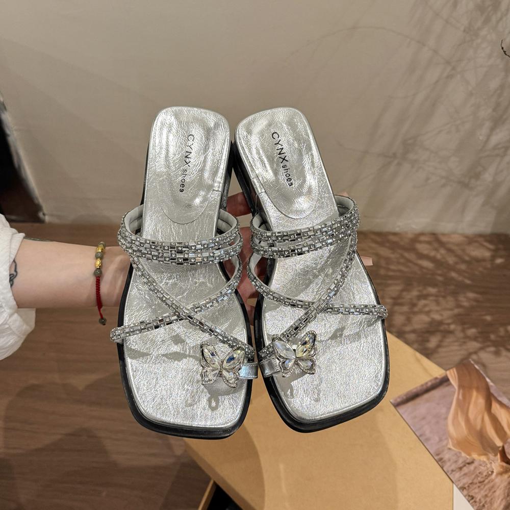 Лето 2025 Женские Модные Сандалии на Толстой Подошве 5 см для Улицы из ПУ Материала Удобные Шлепанцы на Платформе с Высотой 40 серебряный