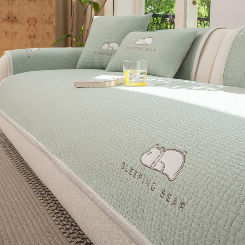Лето 2025 Новый Маленький Свежий Ледяной Шелк Подушка для Дивана Мягкая Нескользящая Прохладная Дышащая Подушка для Сиденья Мультяшная Подушка для Спины Полотенце Чехол Ткань 45X45cm pillowcase зелёный