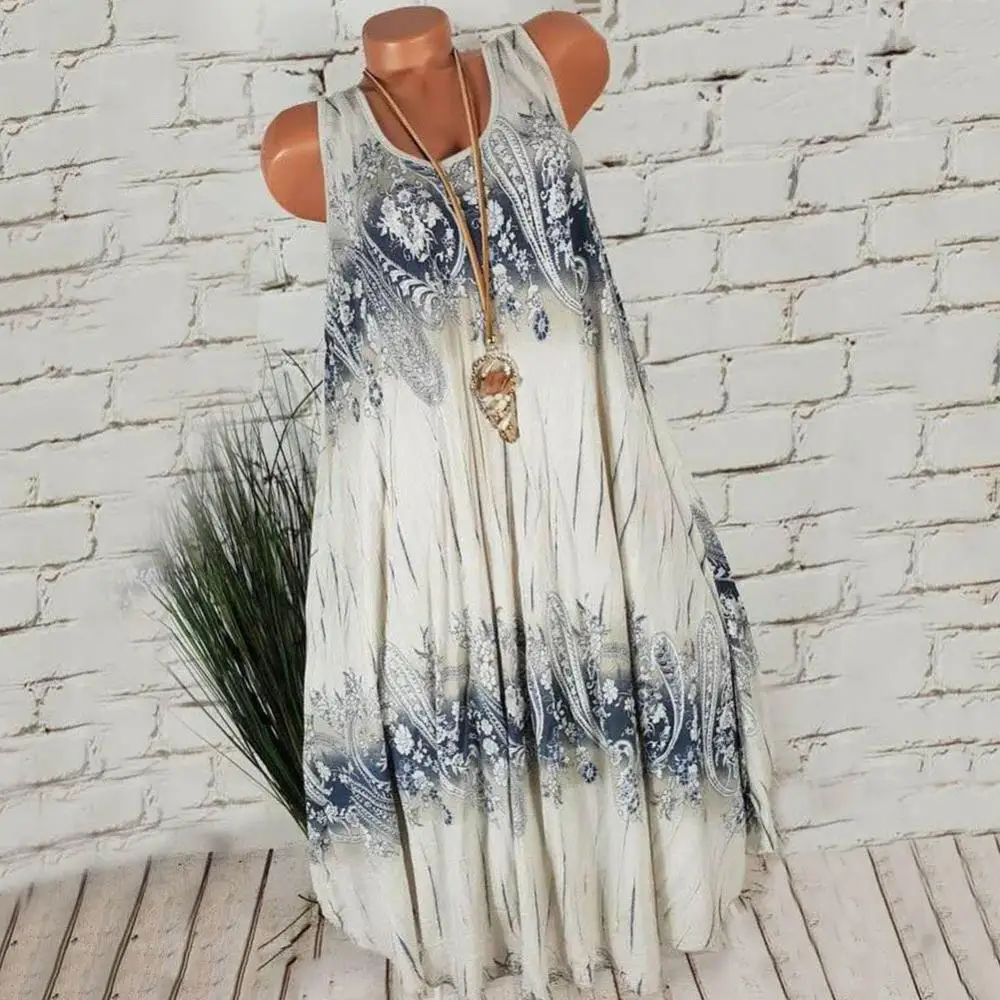 Лидер продаж! Женское летнее свободное плиссированное платье на бретелях с цветочным принтом и круглым вырезом