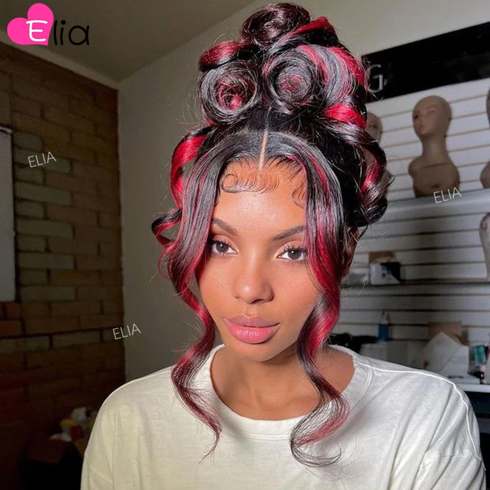 Лидер продаж, парик из человеческих волос Elia Hair 13x 6, парики из человеческих волос на сетке спереди, 30 дюймов, прямые розовые волосы для женщин...