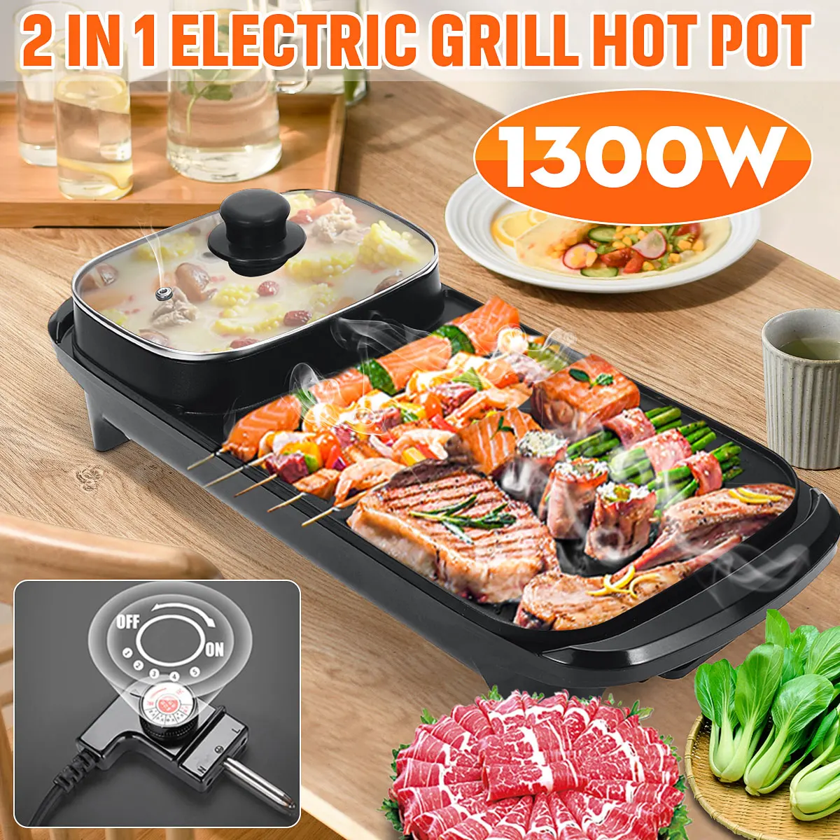 Многофункциональная разделительная кастрюля 2 в 1, сковорода для гриля, антипригарная сковорода, сковорода для барбекю, приготовления еды, с...