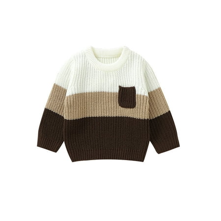 Merqwadd Baby Boys and Girls Knit Sweater in Contrast Color with Warm Crew Neck Pullovers