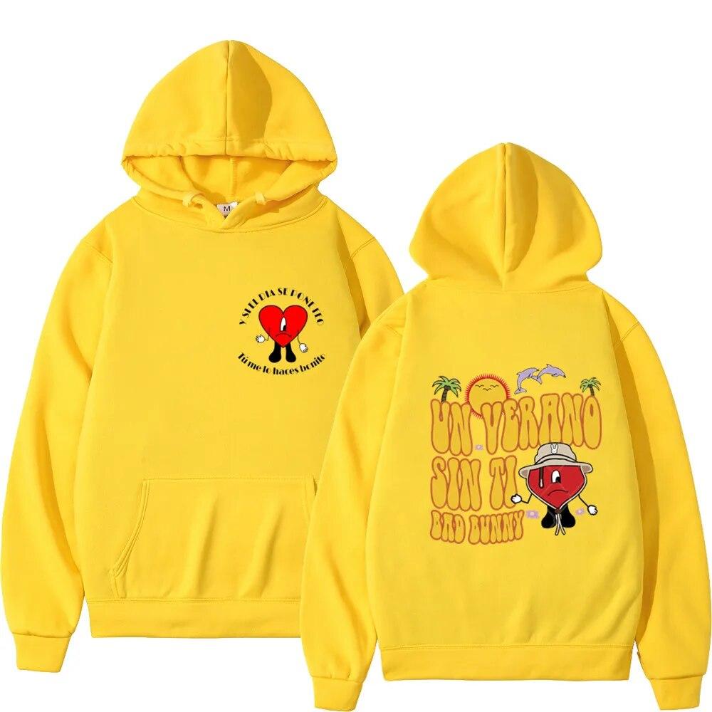 Лидер продаж 2022 года, толстовки унисекс, хип-хоп Bad Bunny UN VERANO SIN TI, флисовый пуловер с принтом Harajuku, мужской свитер, женская одежда с капюшоном, топы XL