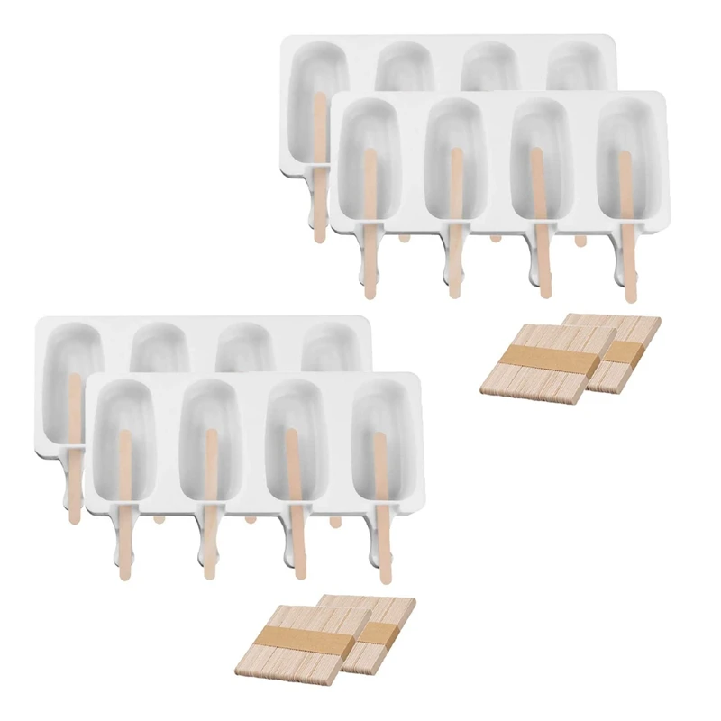 Лидер продаж, 4 шт., силиконовые формы для приготовления мороженого, мини-форма для приготовления домашнего мороженого с 200 Деревянными Пало...