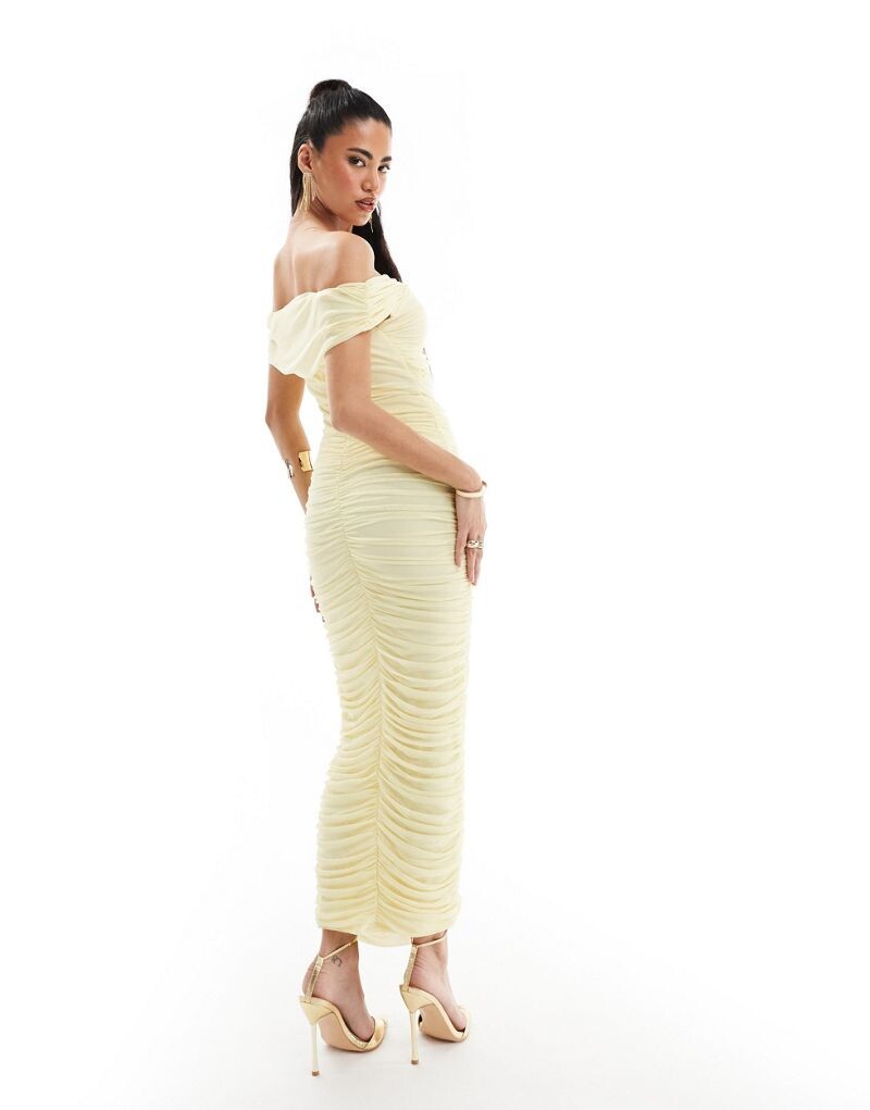 Лимонное платье миди со сборками и запахом ASOS DESIGN
