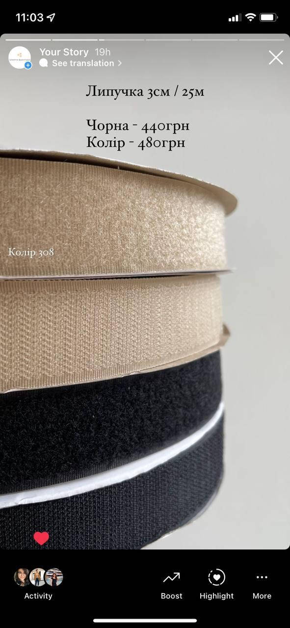 Ліпучка для одягу чорного та бежевого кольорів, ширина - 30мм, бобіна 25м. Липучка польська, хорошої якості.