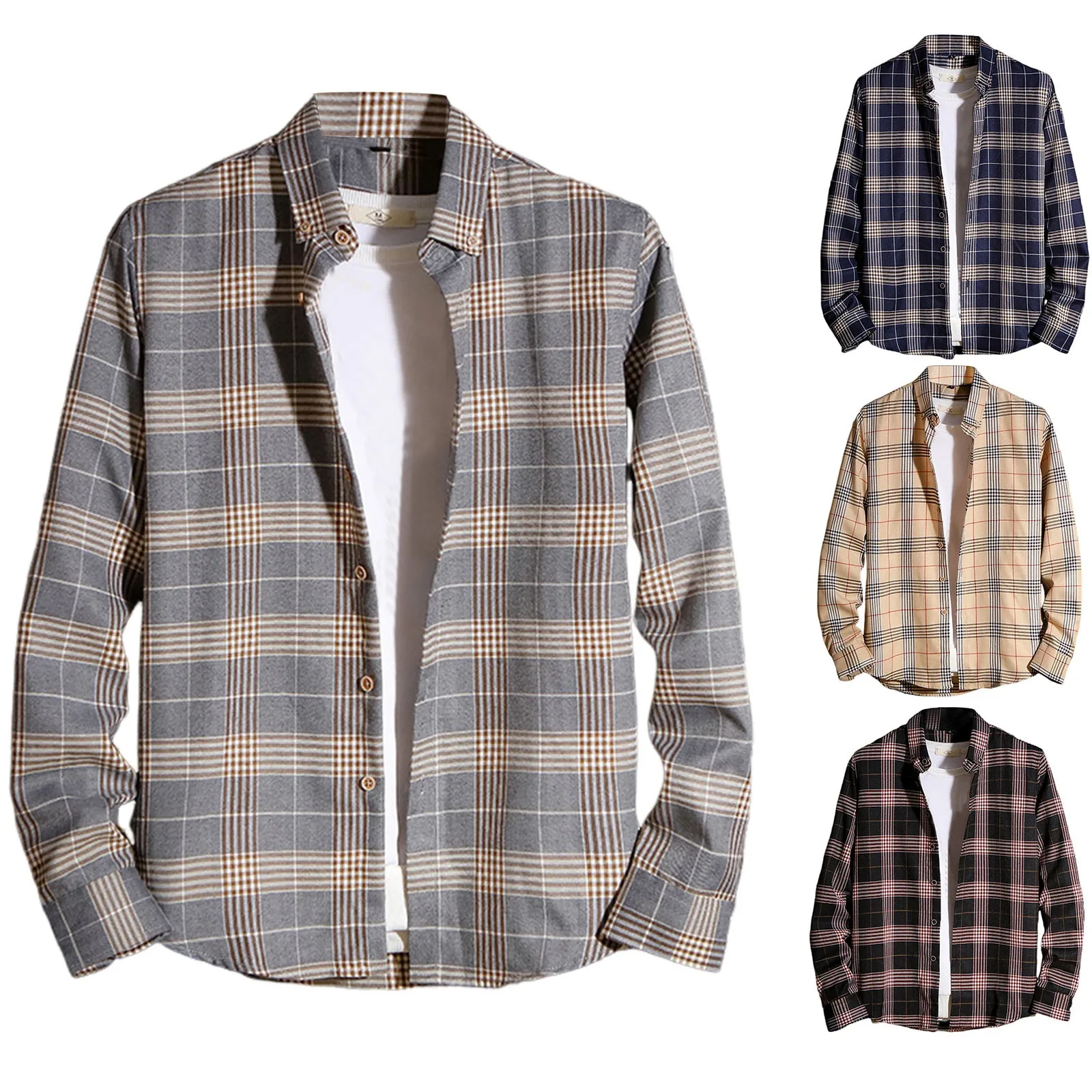 Рубашка мужская в клетку, Повседневный Кардиган на пуговицах, с лацканами, на весну-осень
