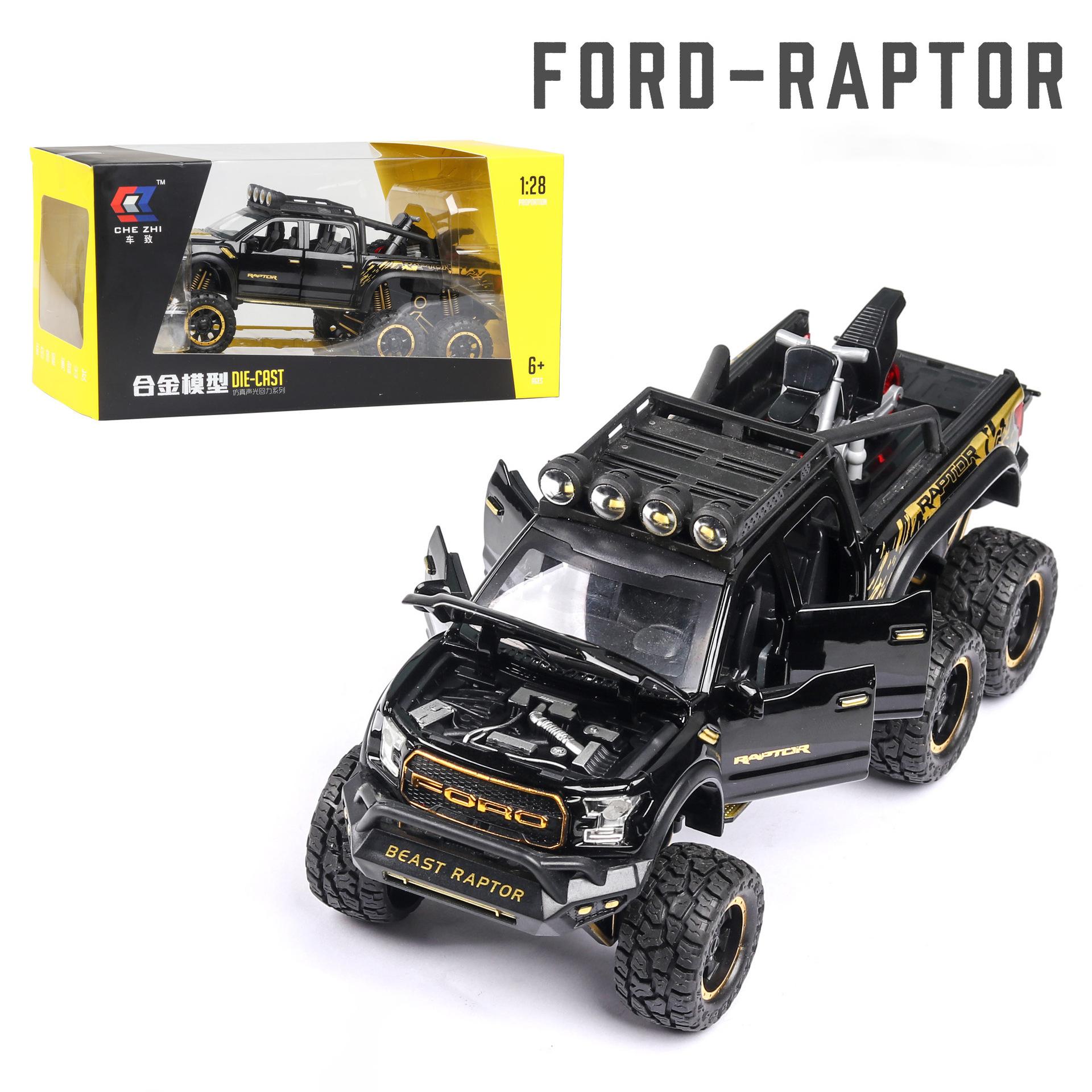 Литая под давлением металлическая модель автомобиля Ford F150 Raptor в масштабе 1/28, со звуком и светом для детей от 3 лет и старше 1/28-22x9.5x9cm