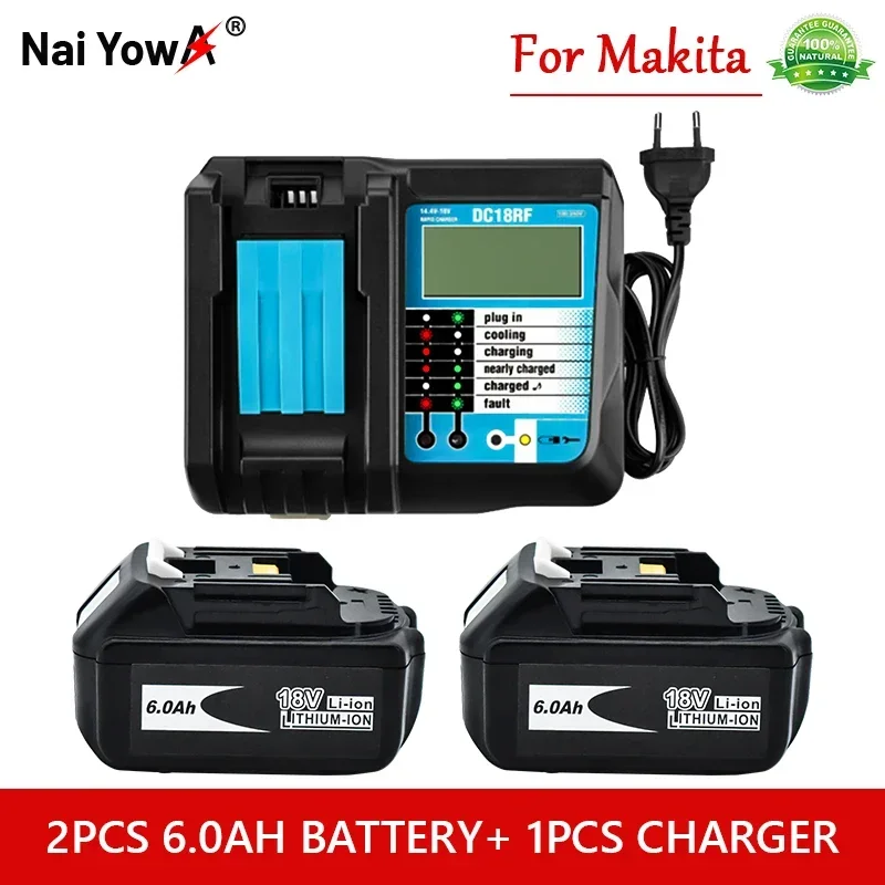 Литий-ионный перезаряжаемый аккумулятор Makita 18 в 6 Ач для MAKITA BL1880, BL1860, Bl1830, с зарядным устройством 4A