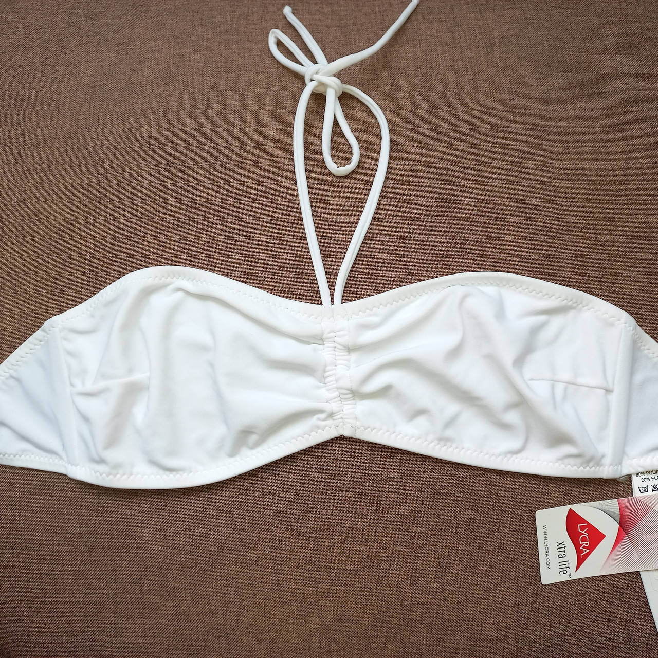Одна бретельки завязываются за шеей и ими же можно регулировать складочки между чашками.